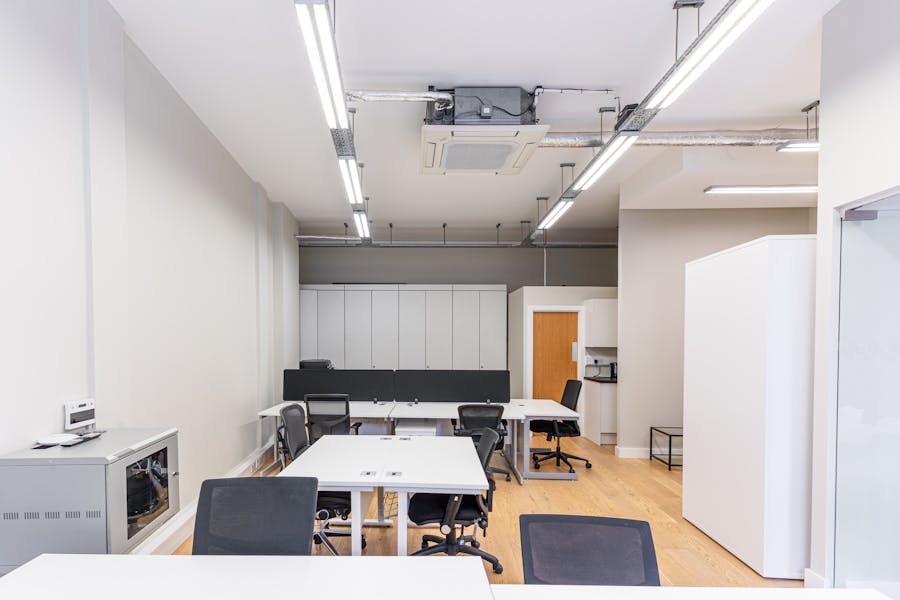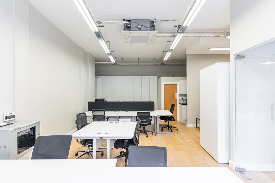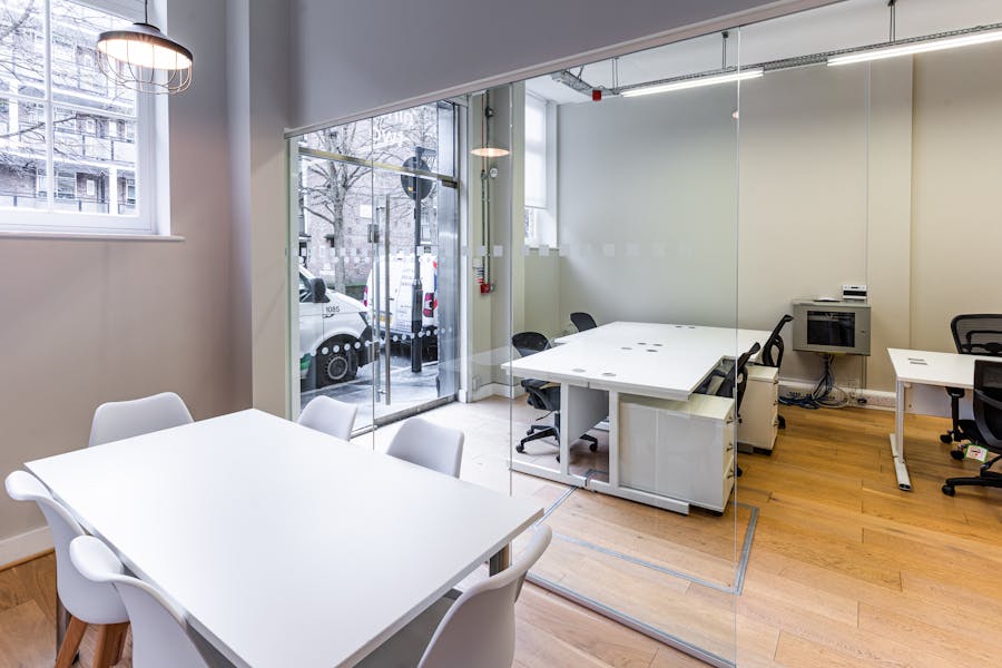 At 92 Banner Street, the property comprises a self‑contained ground floor unit with excellent street frontage. The space provides a bright and versatile environment, featuring generous ceiling heights and abundant natural light. It is fitted with a meeting room and kitchenette, offering practical amenities alongside open, adaptable space. The premises benefit from Class E usage, making them suitable for a wide range of occupiers, including office, retail, café, or wellness uses such as a yoga or pilates studio.