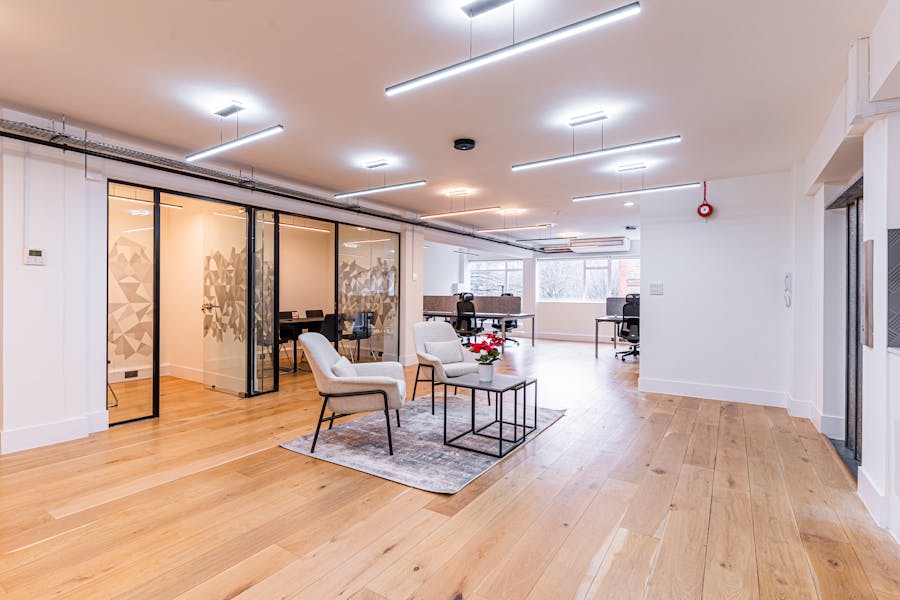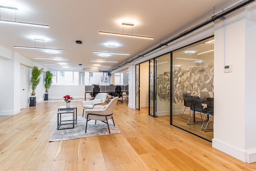 46-47 Britton Street offers media style accommodation just moments from Farringdon Station with charming views over Saint John’s Garden. The office benefits from wooden flooring, good floor to ceiling height and excellent natural daylight throughout. The fitted floor offer 2 meeting rooms, kitchenette, demised w/c’s and shower and a passenger lift.