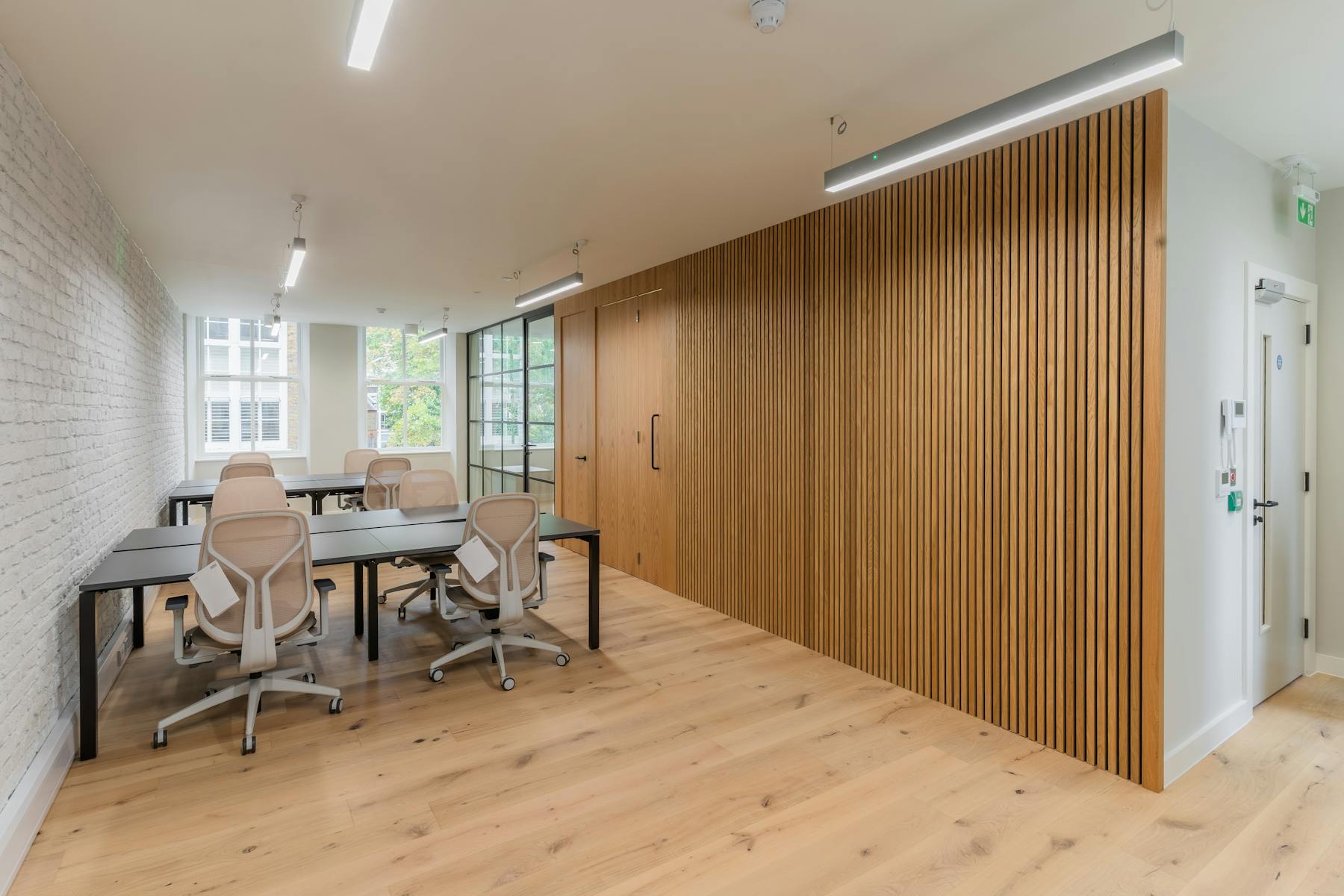 The office is situated on the 1st floor of a former warehouse building above the fashionable retailer Carhartt. The floor has been refurbished recently to a high specification including new air conditioning, contemporary black track LED lighting and LED strip lights, new kitchenette and a raised engineered timber floor including floor boxes. The office is design-led and the colour scheme flows seamlessly throughout, making this the perfect home for a creative studio.