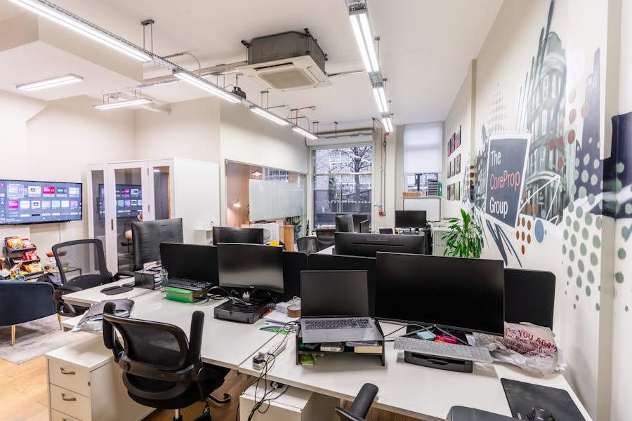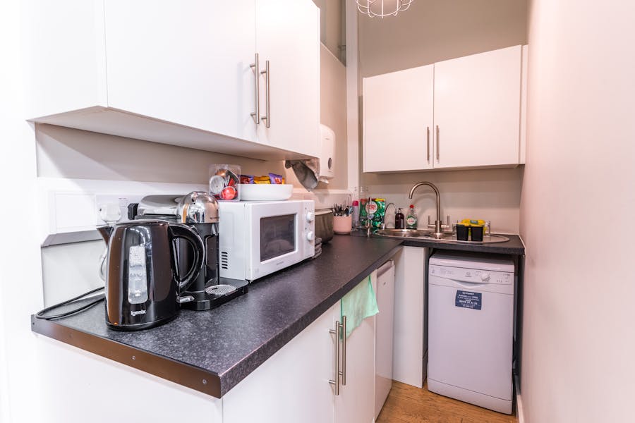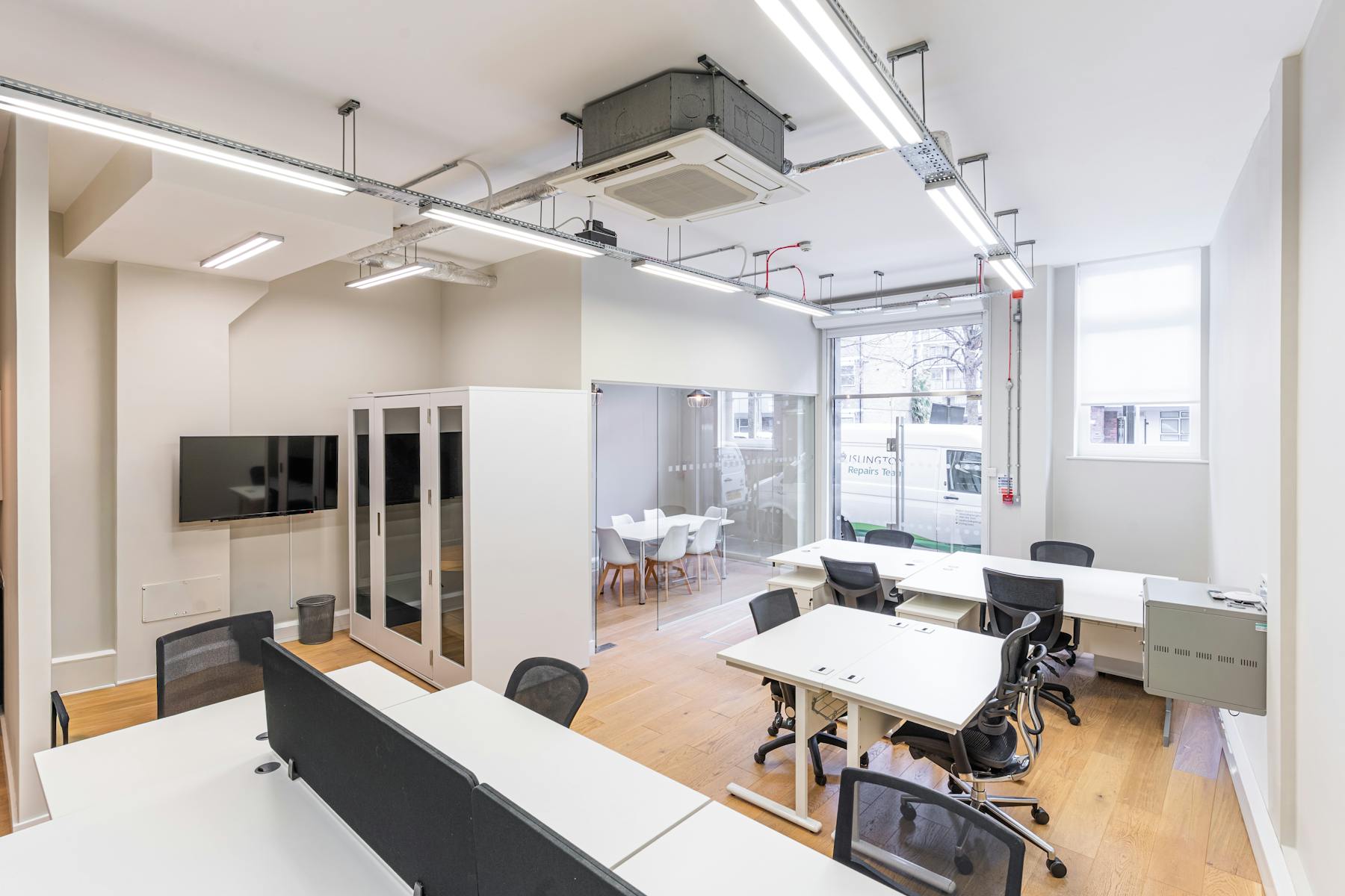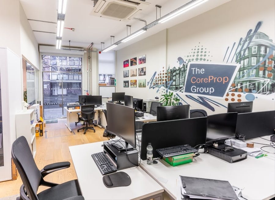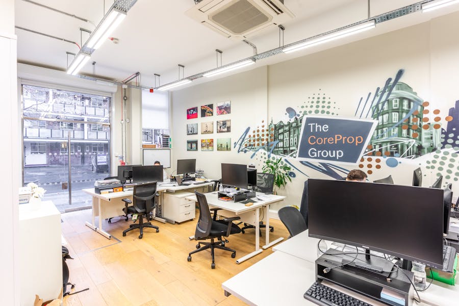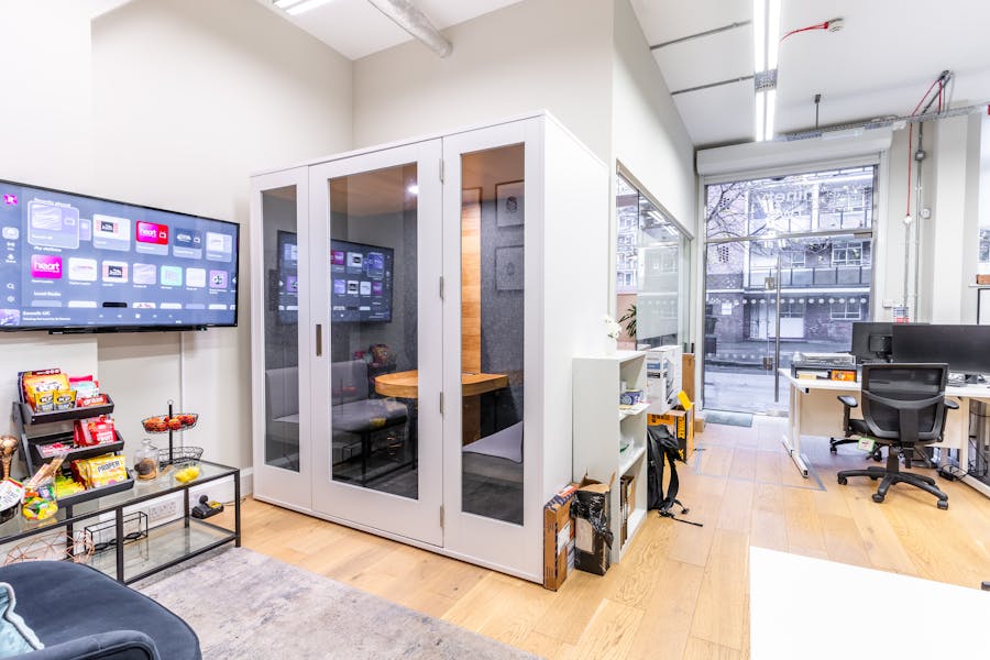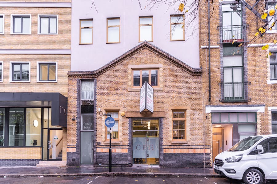 At 92 Banner Street, the property comprises a self‑contained ground floor unit with excellent street frontage. The space provides a bright and versatile environment, featuring generous ceiling heights and abundant natural light. It is fitted with a meeting room and kitchenette, offering practical amenities alongside open, adaptable space. The premises benefit from Class E usage, making them suitable for a wide range of occupiers, including office, retail, café, or wellness uses such as a yoga or pilates studio.