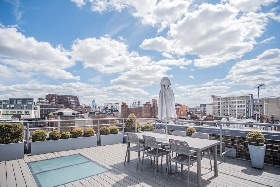 The 4th floor benefits from excellent floor to ceiling heights and fantastic natural light from dual aspect windows and a skylight. The floor is offered in an open plan layout with three meeting rooms. The building benefits from good amenities including a staffed reception, shower and bike storage. There is a large communal roof terrace for tenants in the building to enjoy and can also be booked for private events via the reception.